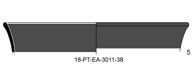 Muestra bandas de barniz negro en la superfície exterior, también en el interior, con ligera reserva en la zona del labio. Procedente de los niveles de la fase 1A de la Neápolis, fachada marítima, sector Moll Grec.