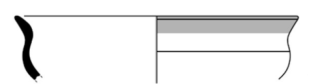 Borde de una copa de cerámica de pasta clara de origen massaliota con decoración pintada de una banda horizontal en el exterior de color rojizo. Hallada en los niveles de la fase 2B del sector N-22 del barrio portuario de la Neápolis de Empúries.