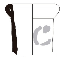 Borde de ánfora de vino massaliota del tipo A-MAS-1 (PY 1978), con repliegue característico del labio, bd1 (PY 1993). Hallada en los niveles de la fase 2A del sector del Moll Grec de la fachada marítima de la Neápolis.